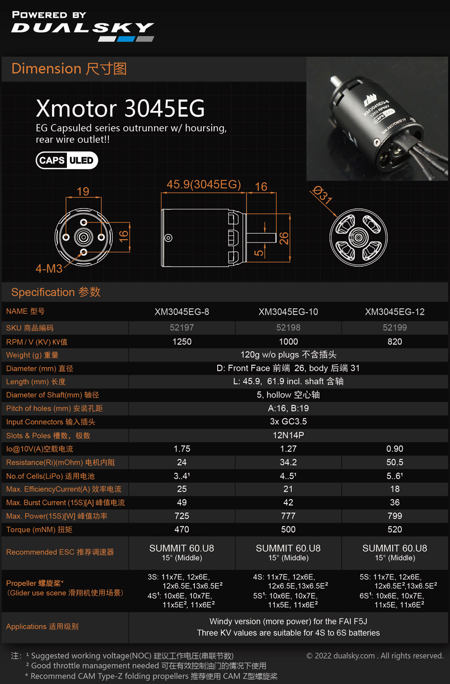 *推荐使用双天BA V2系列电调,进角设置15度(中)
